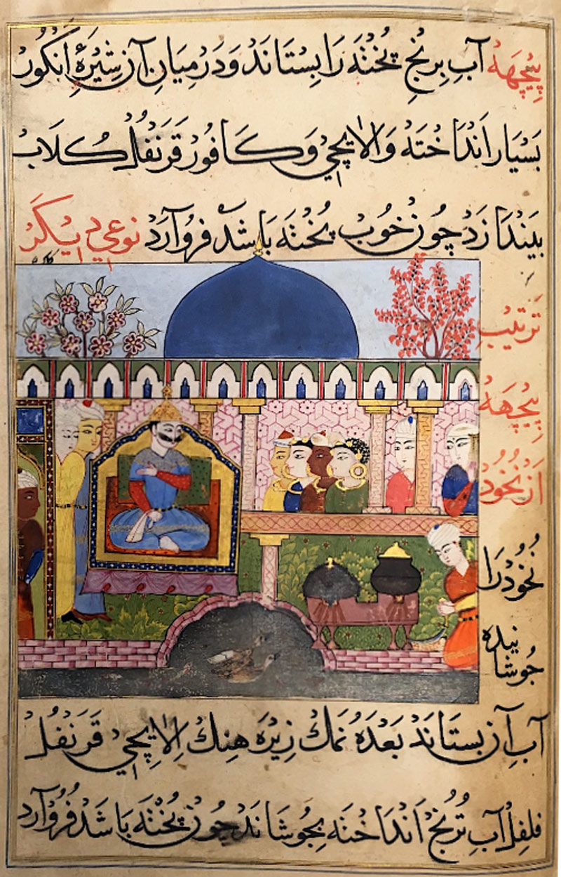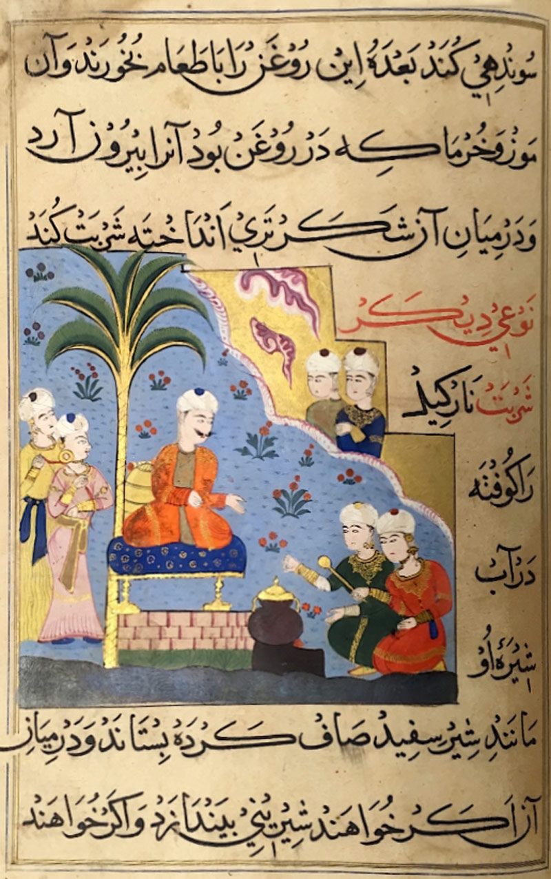 Ghiyas al-Din watches the process of cooking green vegetables (Image: British Library/ Public Domain)